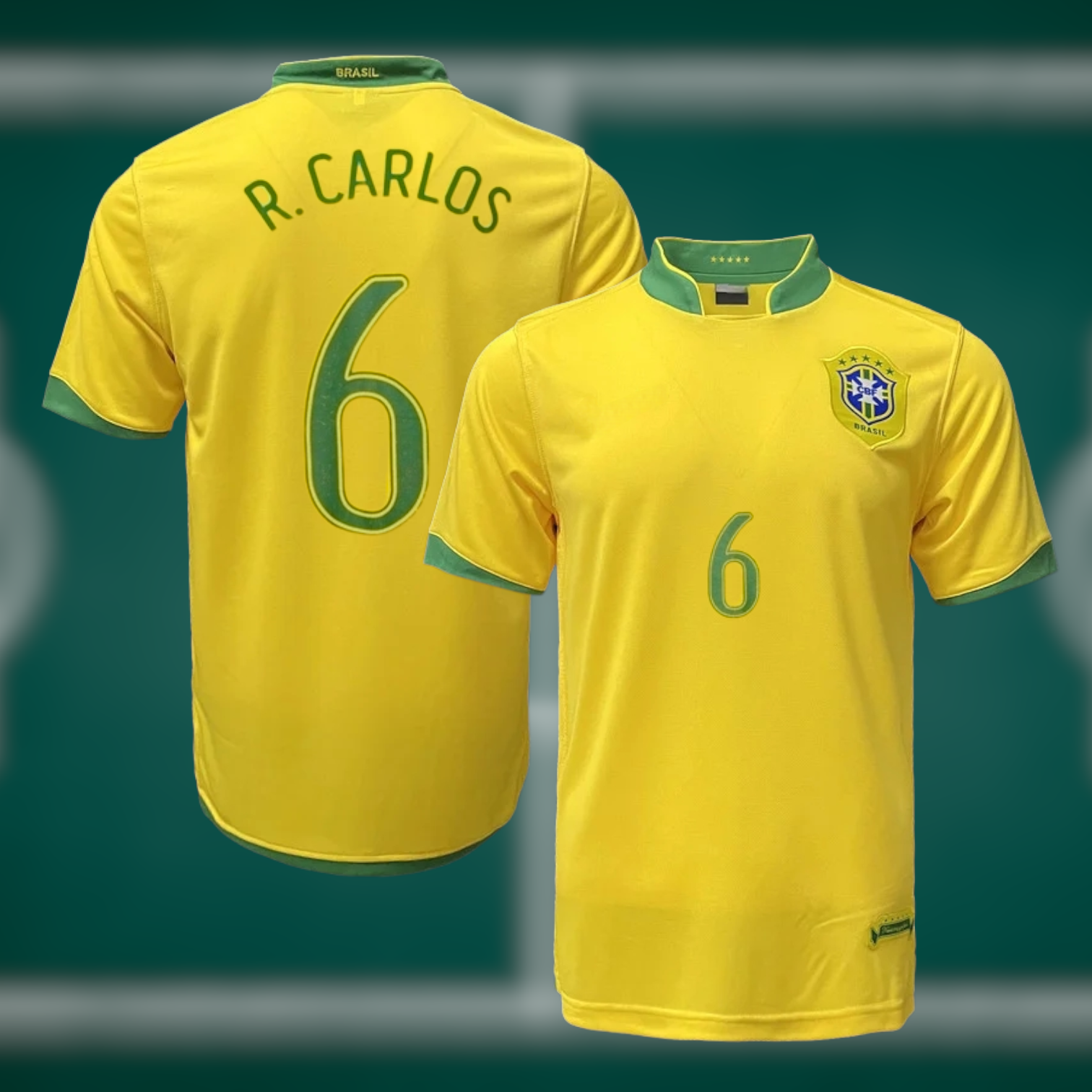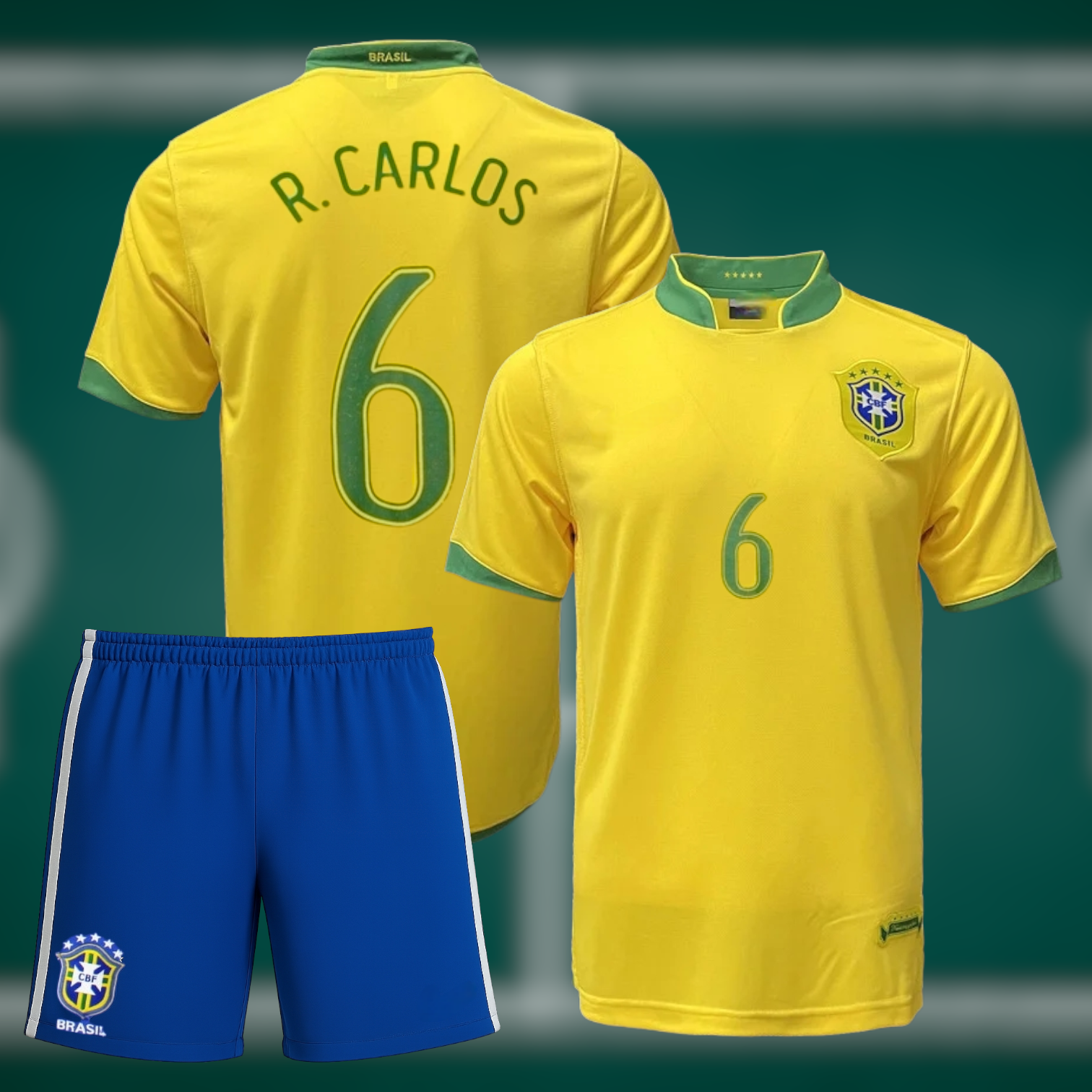 Retro Brasil VM 2006 Hjemmedrakt med shorts og Roberto Carlos trykk - Barn