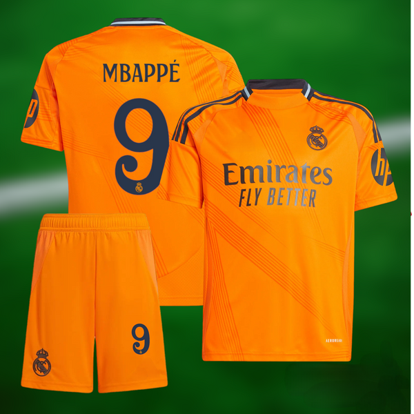Real Madrid 24-25 Bortedrakt med shorts og Mbappe trykk - Barn og Voksen