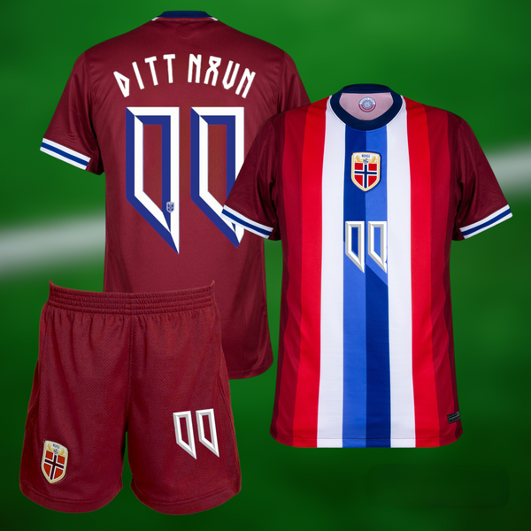 Norge 2024 Hjemmedrakt med shorts og Valgfritt trykk - Barn og Voksen