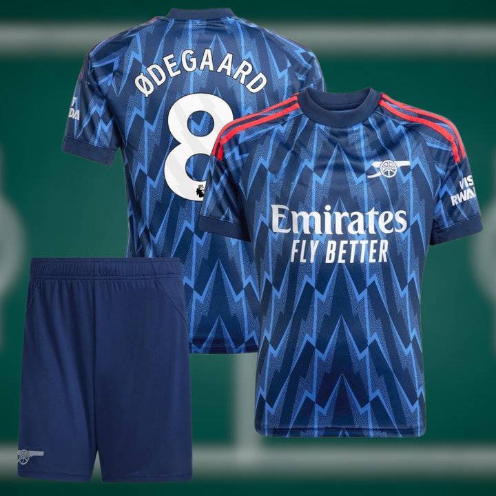 Arsenal 25-26 Bortedrakt med shorts og Ødegaard trykk - Barn