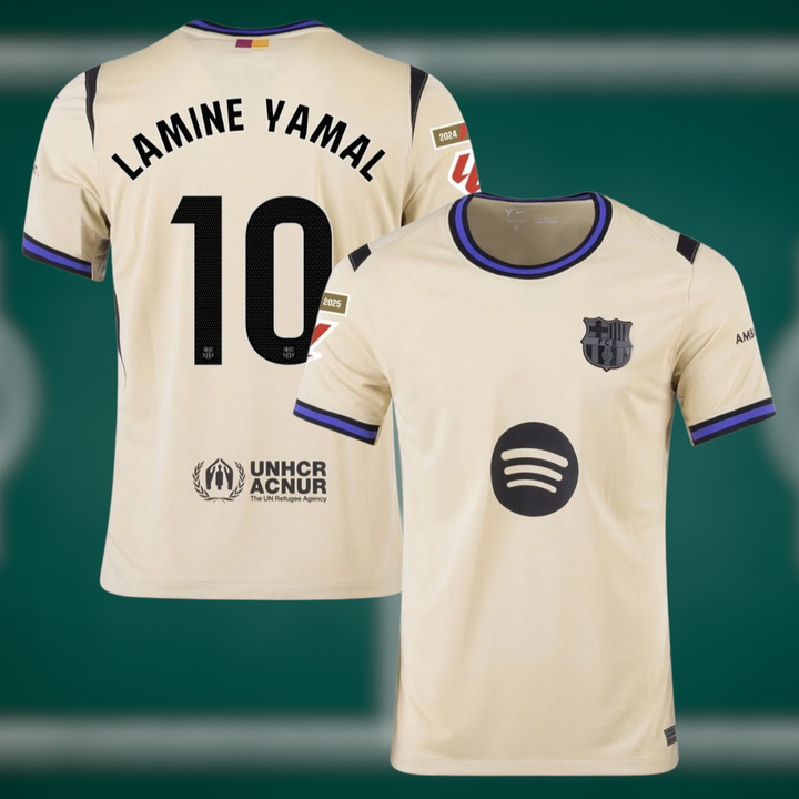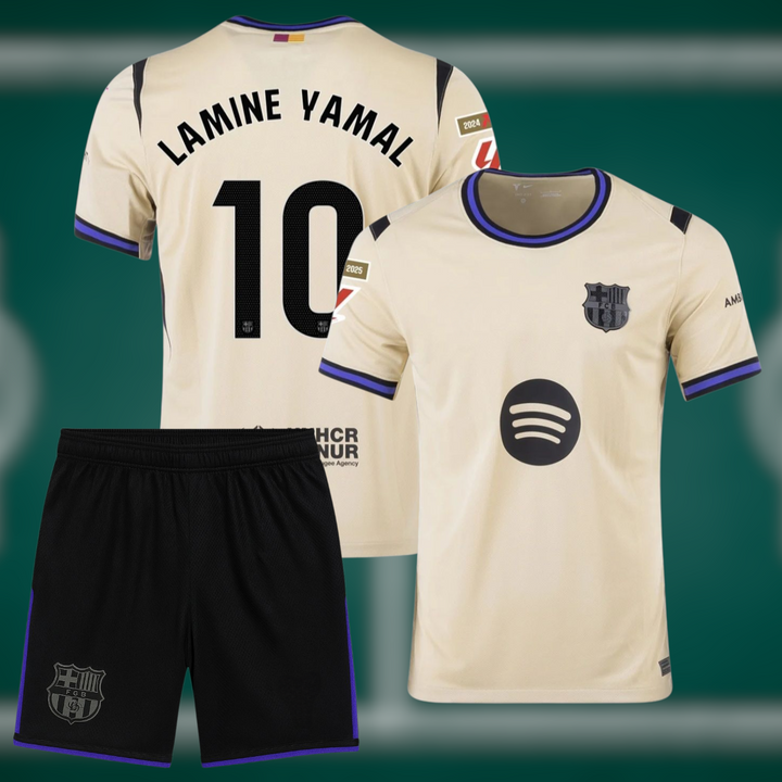 Barcelona 25-26 Bortedrakt med shorts og Lamine Yamal trykk - Barn og Voksen