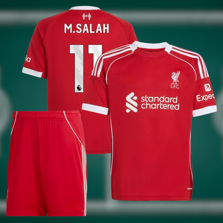 Liverpool 25-26 Hjemmedrakt med shorts og Salah trykk - Barn og Voksen