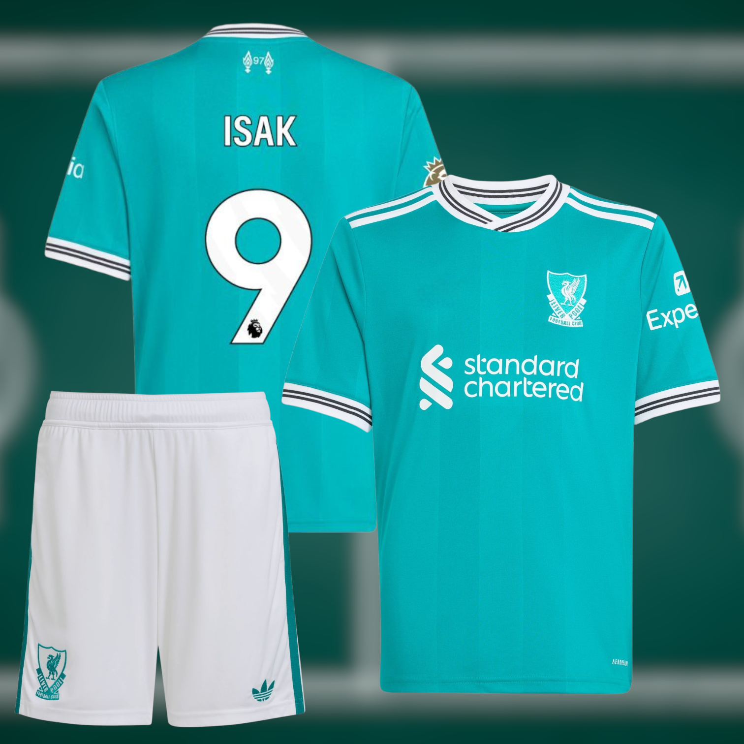 Liverpool 25-26 Tredjedrakt med shorts og Isak trykk - Barn og Voksen