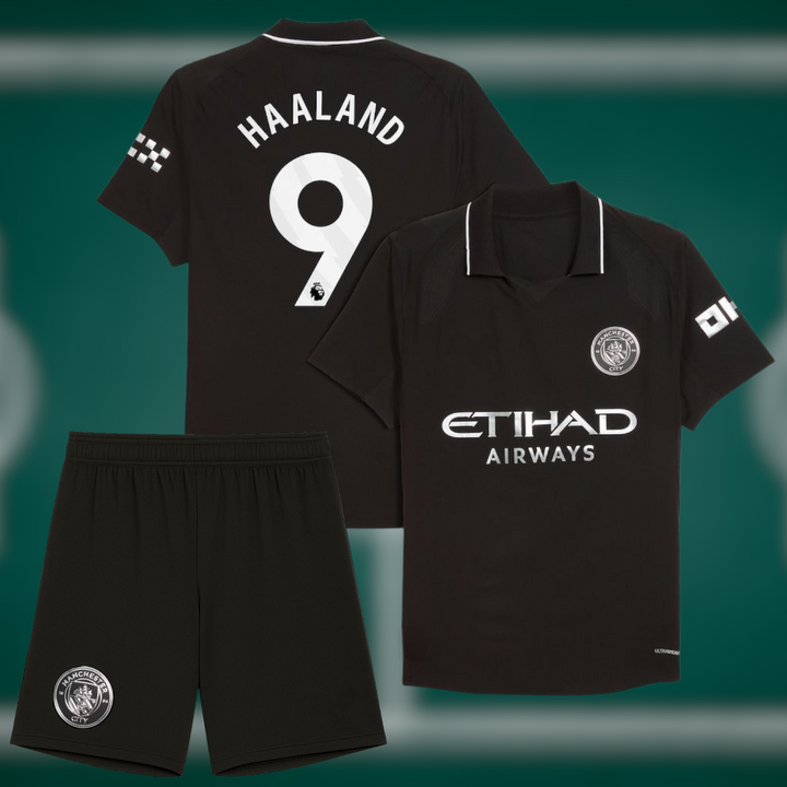 Manchester City 25-26 Bortedrakt med shorts og Haaland trykk - Barn