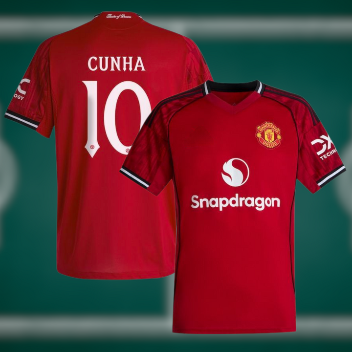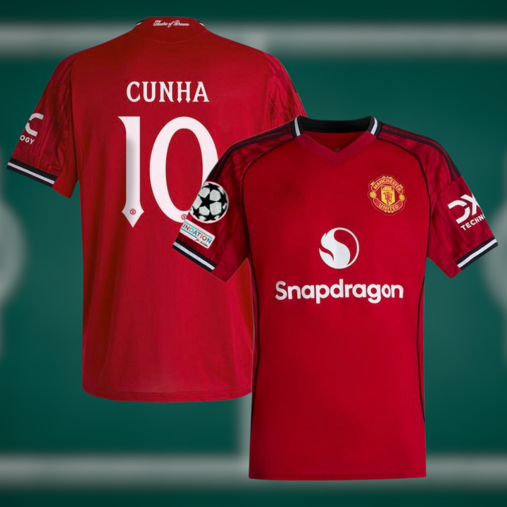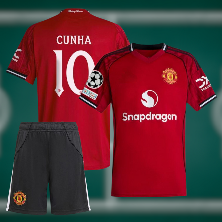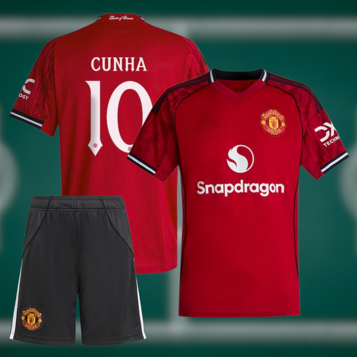 Manchester United 25-26 Hjemmedrakt med shorts og Cunha trykk - Barn og Voksen