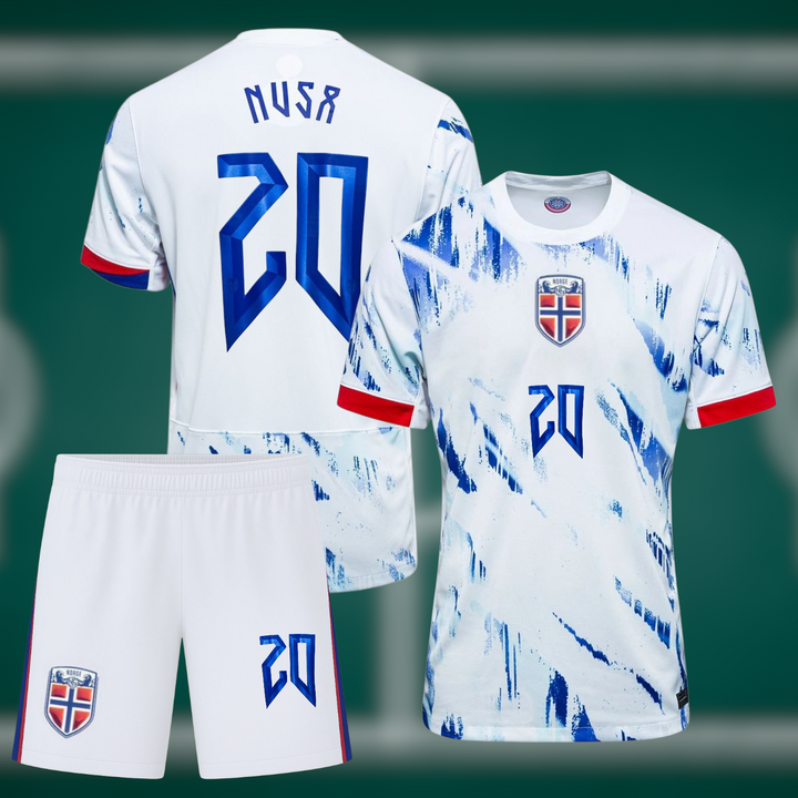 Norge 2024 Bortedrakt med shorts og Nusa trykk - Barn og Voksen