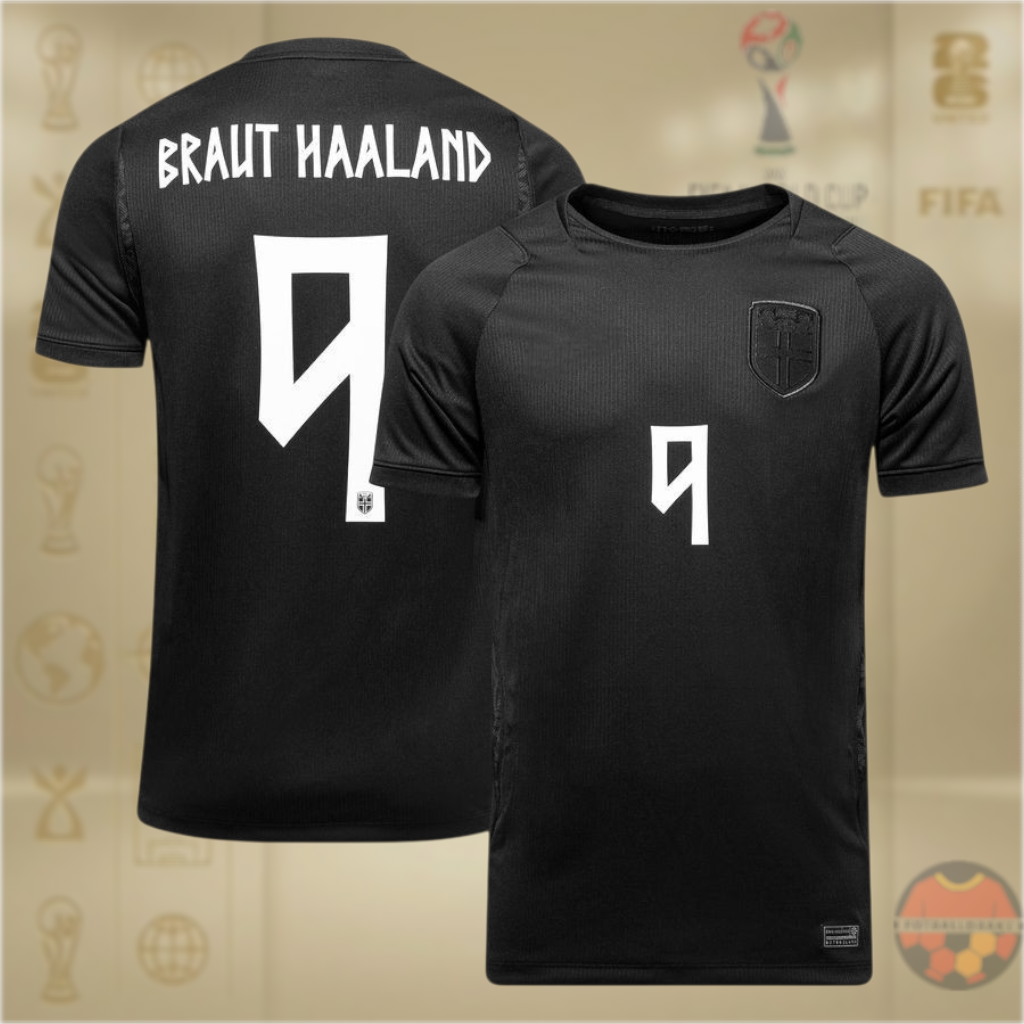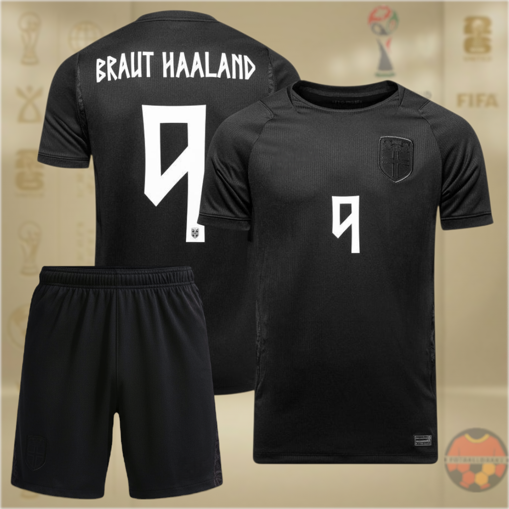 Norge VM 2026 Bortedrakt med Shorts og Braut Haaland trykk - Voksen og Barn