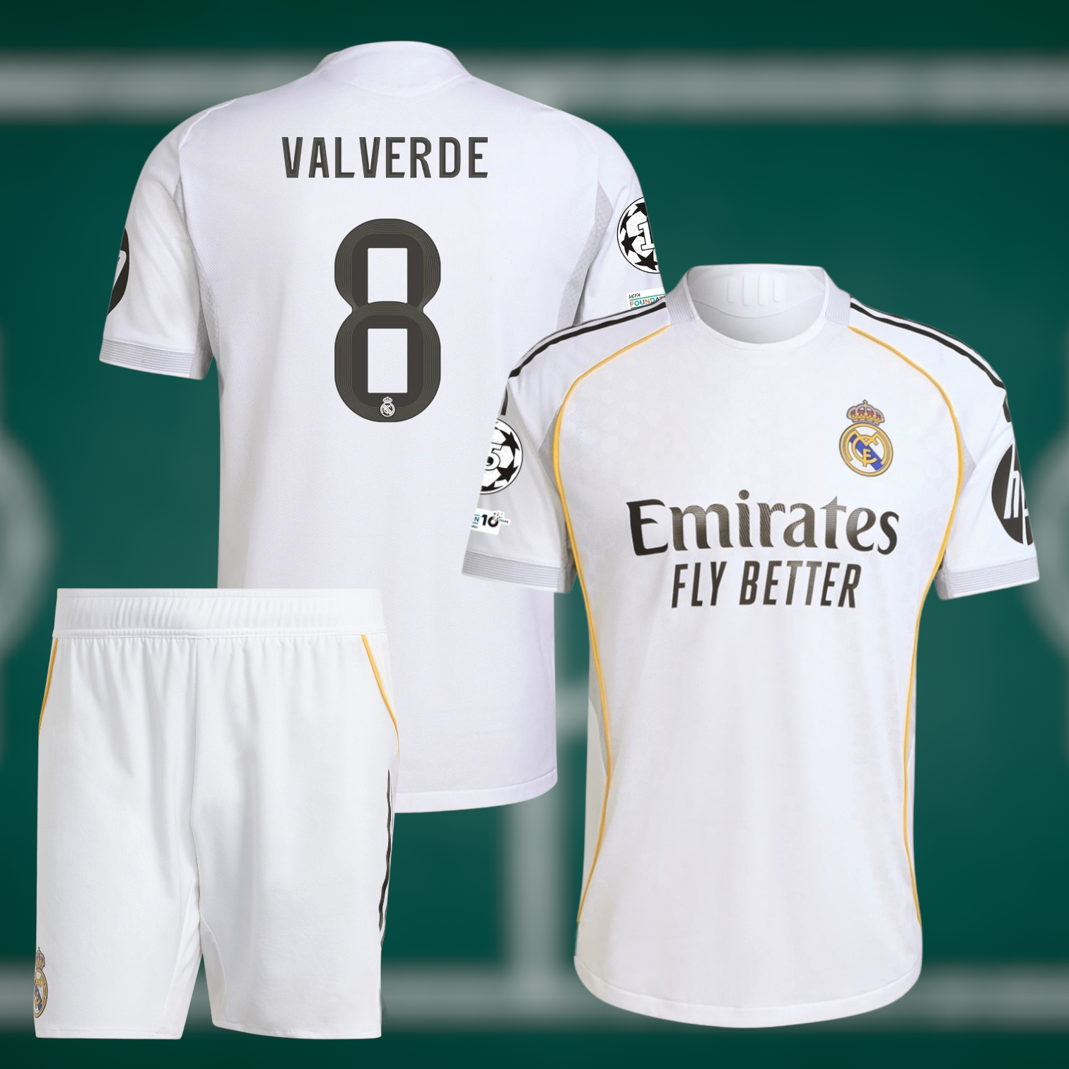 Real Madrid 25-26 Hjemmedrakt med shorts og Valverde trykk - Barn