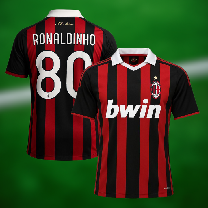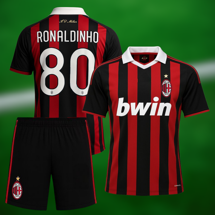 Retro AC Milan 09-10 Hjemmedrakt med Shorts og Ronaldinho trykk - Voksen og Barn